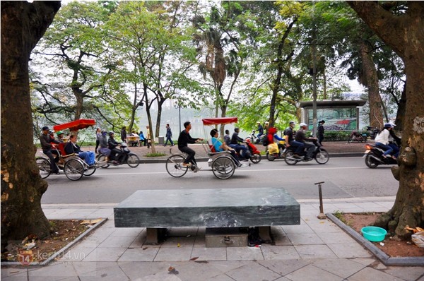 Niềm vui mừng của những người Hà Nội và cả khách nước ngoài khi nhìn thấy hình ảnh chiếc ghế đá cổ bên Hồ Gươm.