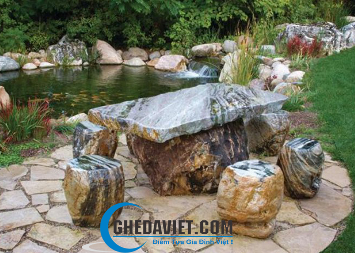 - Bộ bàn ghế đá tự nhiên nguyên khối