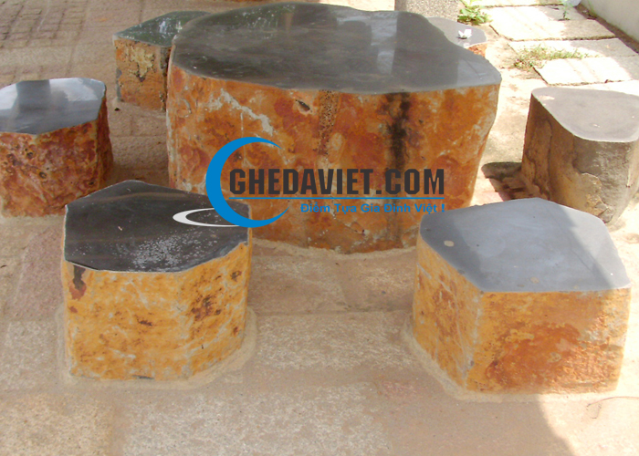 - Bộ bàn ghế đá tự nhiên nguyên khối