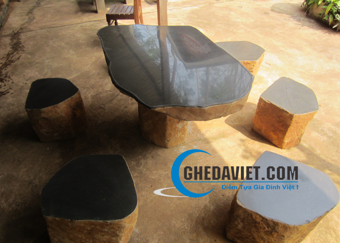 - Bộ bàn ghế đá tự nhiên nguyên khối