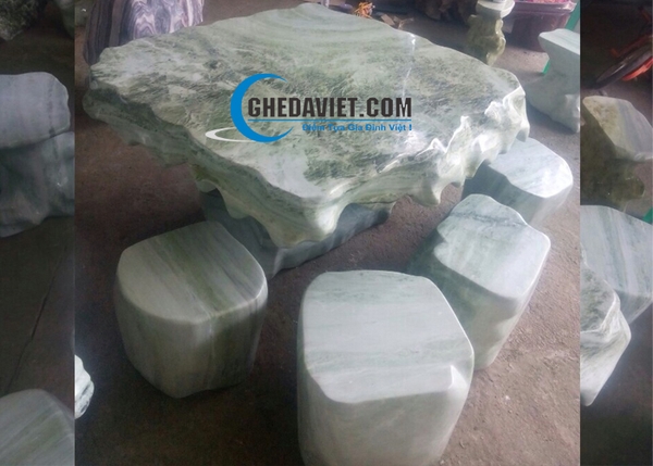 Bàn ghế đá cẩm thạch xanh ngọc vân mờ GDCT-06