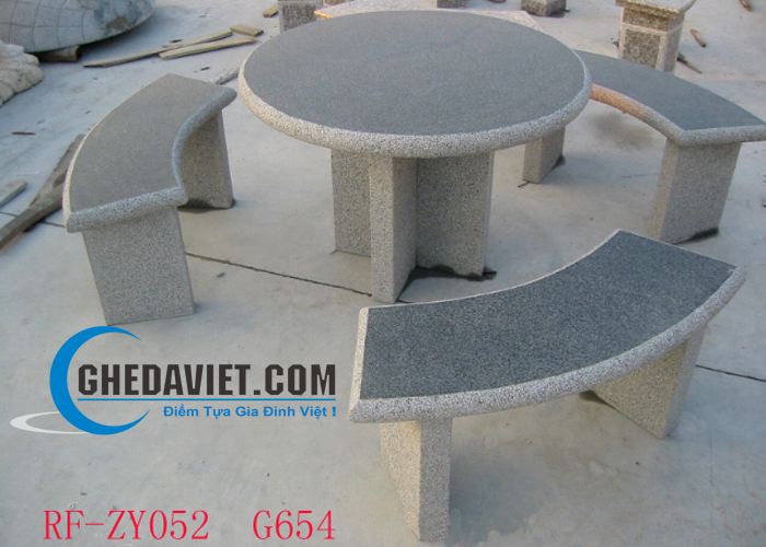 Bàn ghế đá Granite 1 bàn tròn 3 ghế cong GDGR-02