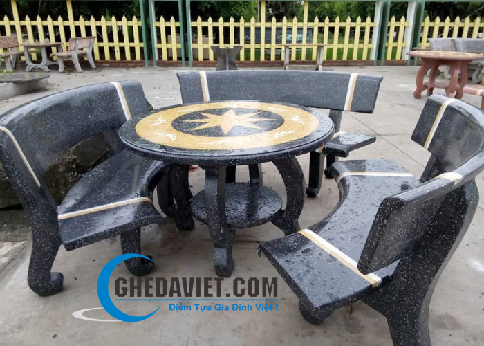 Bàn ghế đá Granito màu đen GDCV-76