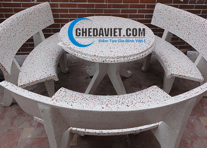 - Đặc tính nổi bật: Bàn ghế đá mài được làm từ những nguyên vật liệu như: Cát, đá, sỏi, sắt thép…Được phủ bóng bảo vệ ngoài trời có tính năng chống thấm vượt trội, chịu tác động của thời tiết khắc nghiệt , chống bám nước bề mặt chống bám bụi bẩn và rêu mốc tạo ra độ bóng bè mặt bảo vệ mầu sơn logo tốt hơn ghế thông thường.