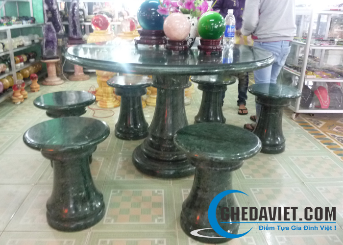 Bàn ghế đá nguyên khối cẩm thạch xanh ngọc GDCT-19