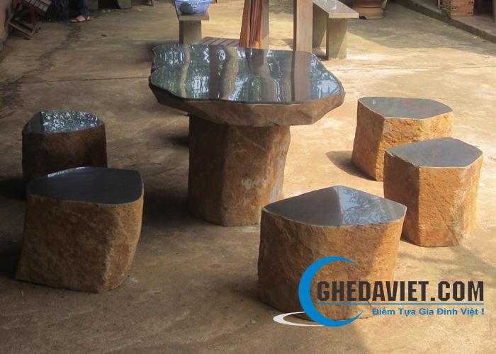Bàn ghế đá tự nhiên Basalt GDTN-59
