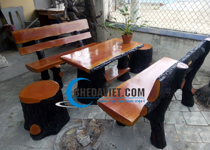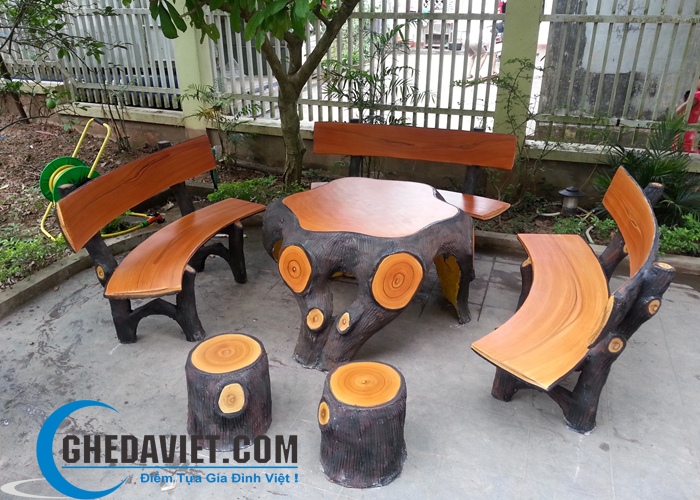 Bàn ghế đá sân vườn giả gỗ GDGG-26