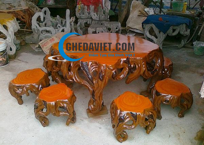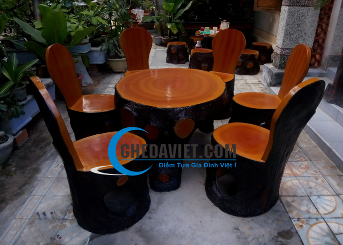 Bàn ghế đá giả gỗ đẹp GDGG-04