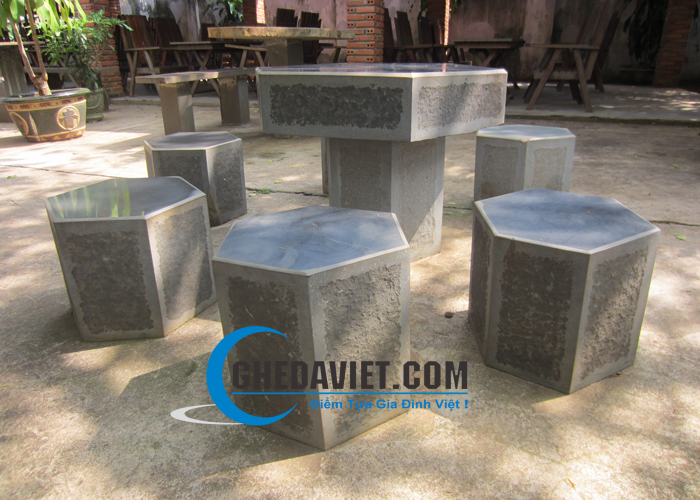 THÔNG TIN CHI TIẾT SẢN PHẨM - Bộ bàn ghế đá tự nhiên nguyên khối tạo hình lục giác - Chất liệu: Đá khối Bazan - Bộ sản phẩm gồm: 01 bàn và 06 ghế đôn - Kích thước bàn nhỏ: W1100 x H700 (mm) - Kích...