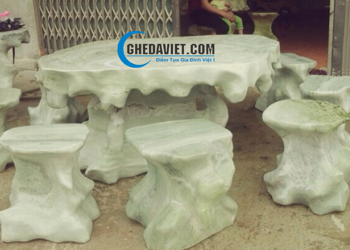 Bàn ghế đá tự nhiên cẩm thạch xanh ngọc GDCT-10