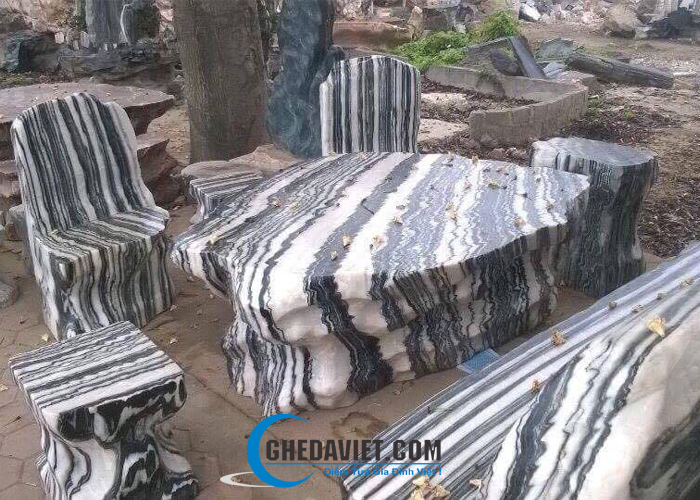 Bàn ghế đá tuyết sơn tự nhiên liền khối GDCT-15