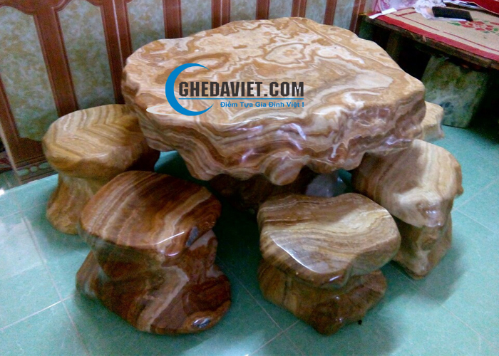 Bàn ghế đá cẩm thạch vàng vân gỗ độc nhất GDCT-03