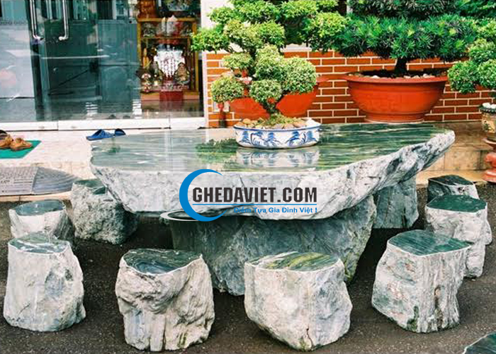 Bộ bàn ghế đá xanh Nhật Bản 10 đôn GDCT-18