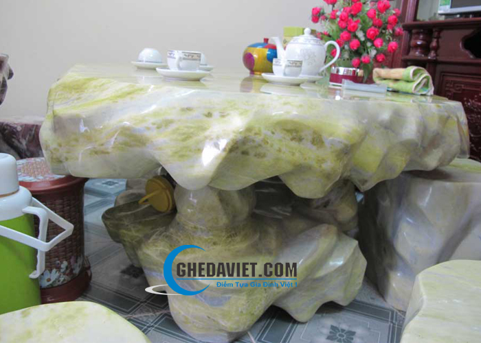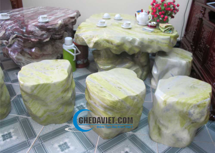 Bộ ghế đá cẩm thạch xanh ngọc ngã vàng GDCT-09